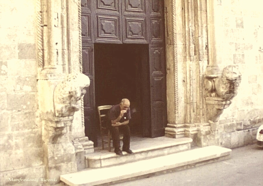 Continuò l’intervento il sacrista della chiesa di San Domenico : “Cari parrocchiani.. scusate per la deformazione… Cari amici e conoscenti, qui da lontano mi sembra di vedere il Cristo sulla riviera tra l’acqua e il sole. Sapete cosa vi dico, io vado a guardarlo da vicino, volesse il cielo di incontrarlo, gli farei omaggio dei miei fichi d’india e poi gli direi: Grazie Signore per la vostra visita quì nella nostra cara riviera sipontina, stasera la invito a una cena di pesce in parrocchia”.