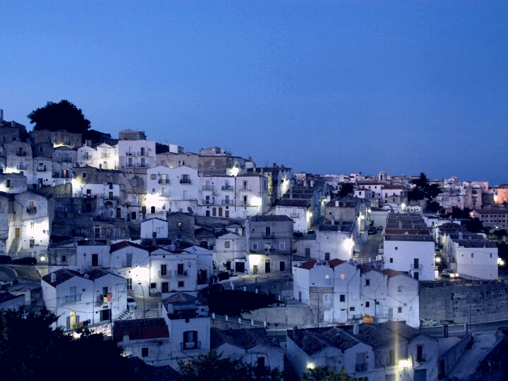 PARTITO da Manfredonia, saliva Monte Sant’Angelo con la macchina ed era sera, la salita fredda e aspra accompagnata stranamente da una leggera umidità,il tempo padroneggiava l’ambiente, le cime dei monti erano rasi e incolti da sembrare da lontano zuccotti di panno rigido dei frati . Quei pochi alberi segnavano le curve strette e continue ad ogni numero. Quando fu su, all’ultimo tornante..iniziò a vedere la periferia del paese.