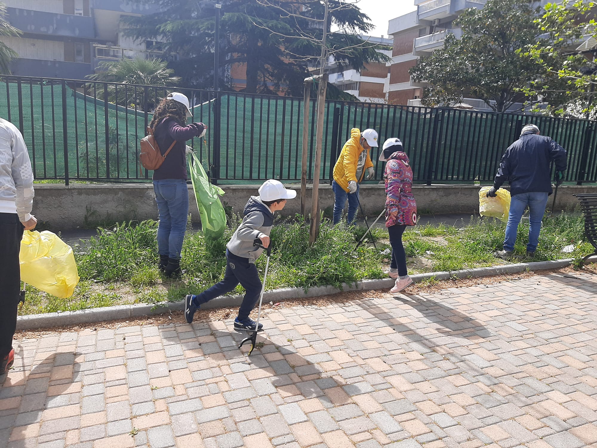 Il gruppo di cittadini volontari, grandi e piccoli, organizzano una raccolta rifiuti.