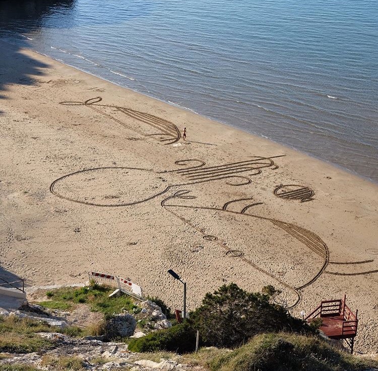 L’artista Bluc Luca Boscardin di Bassano, in queste settimane di ottobre in vacanza sul Gargano si è divertito a rendere le spiagge di Peschici e vieste delle vere e proprie tele sulle quali ha disegnato delle balene.