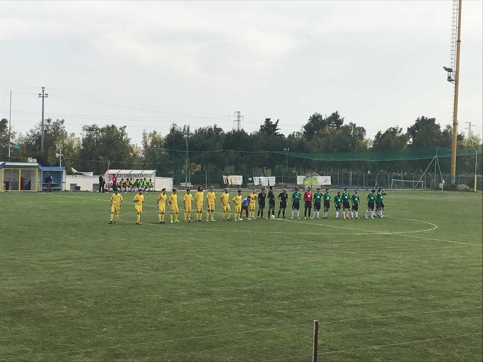 Nel primo tempo la squadra di mister Michelino Rinaldi parte subito bene e impone la sua forza già nei primi minuti di gara, ma un paio di errori in attacco prima di Trimigno e poi di Santoro Matteo, fermano tutto. Al 30’ è la squadra ospite a sfiorare la rete su di un calcio di punizione, ma la palla colpisce la traversa. Dopo due minuti Malavisi riceve palla dalla destra, si smarca, si accentra ed infine scarica sul portiere ma troppo debolmente per impensierirlo. Al 38’ ancora Malavisi ruba un pallone sulla trequarti di campo avversario e serve un assist in area per Santoro Matteo, ma la conclusione finisce fuori a lato. Gli ultimi minuti della prima fazione di gioco vedono una Salvemini più arrembante, ma i tentativi di segnatura vengono vanificati da ripetuti errori e distrazioni sottoporta. Le squadre rientrano negli spogliatoi al termine del primo tempo con il punteggio fermo a reti inviolate.