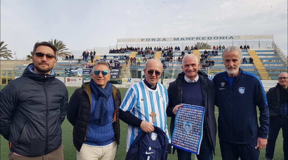 Ne abbiamo avuto dimostrazione questo pomeriggio allo Stadio “Miramare”, dove, prima del match calcistico tra i biancocelesti ed il Mola (vinto per 2-1), con il nostro Arcivescovo Padre Franco Moscone (a cui è stata consegnata una maglia personalizzata con il n. 10) e il Presidente del Manfredonia Calcio 1932 Michele D’Alba abbiamo ringraziato i tifosi e le famiglie che hanno contribuito alla raccolta fondi, attraverso la diffusione del calendario 2022 di tutti i settori agonistici, il cui ricavato sarà oggetto di donazioni in favore della Casa Famiglia Speranza, della Casa Famiglia Don Mario Carmone e dell’A.S.D. per Disabili Delfino.