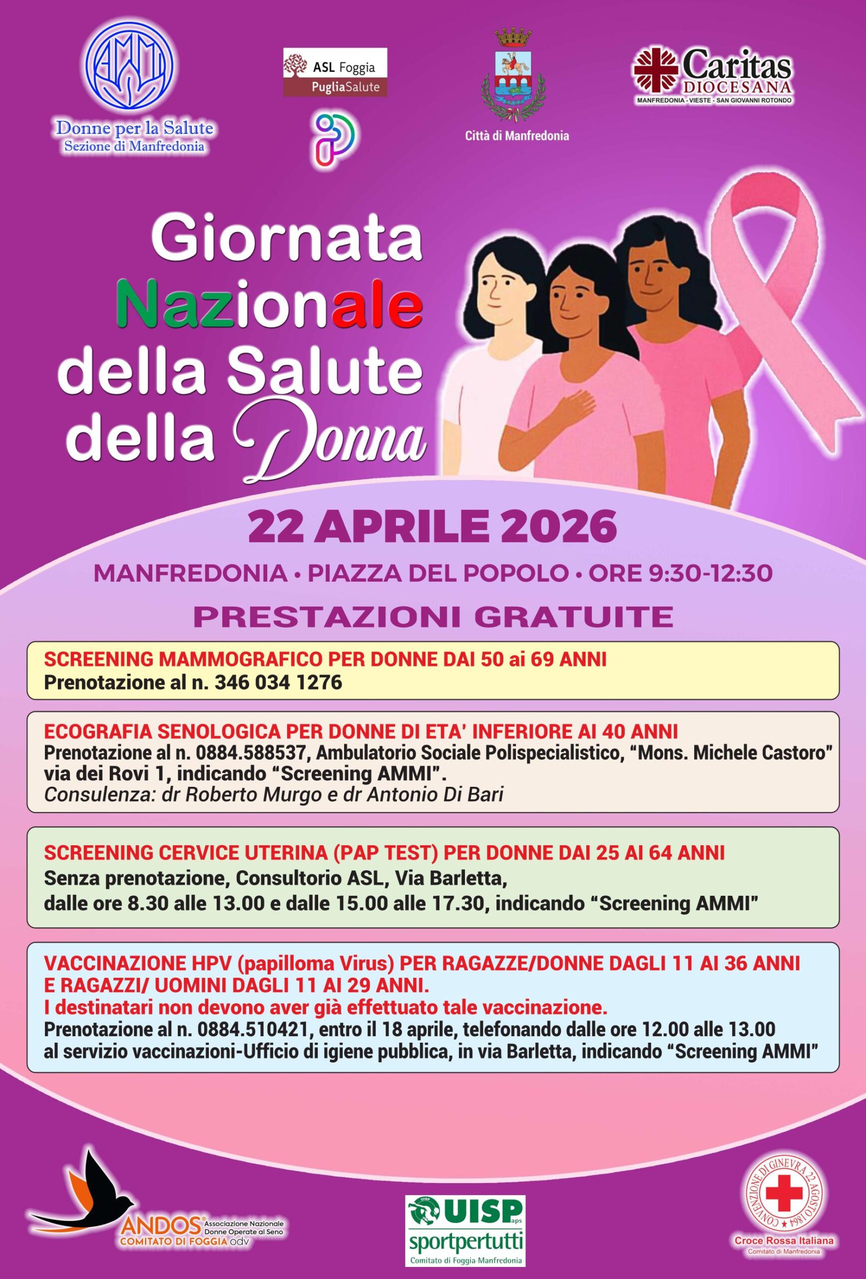mercoledì 22 aprile 2026 in occasione della Giornata Nazionale della salute della donna promossa