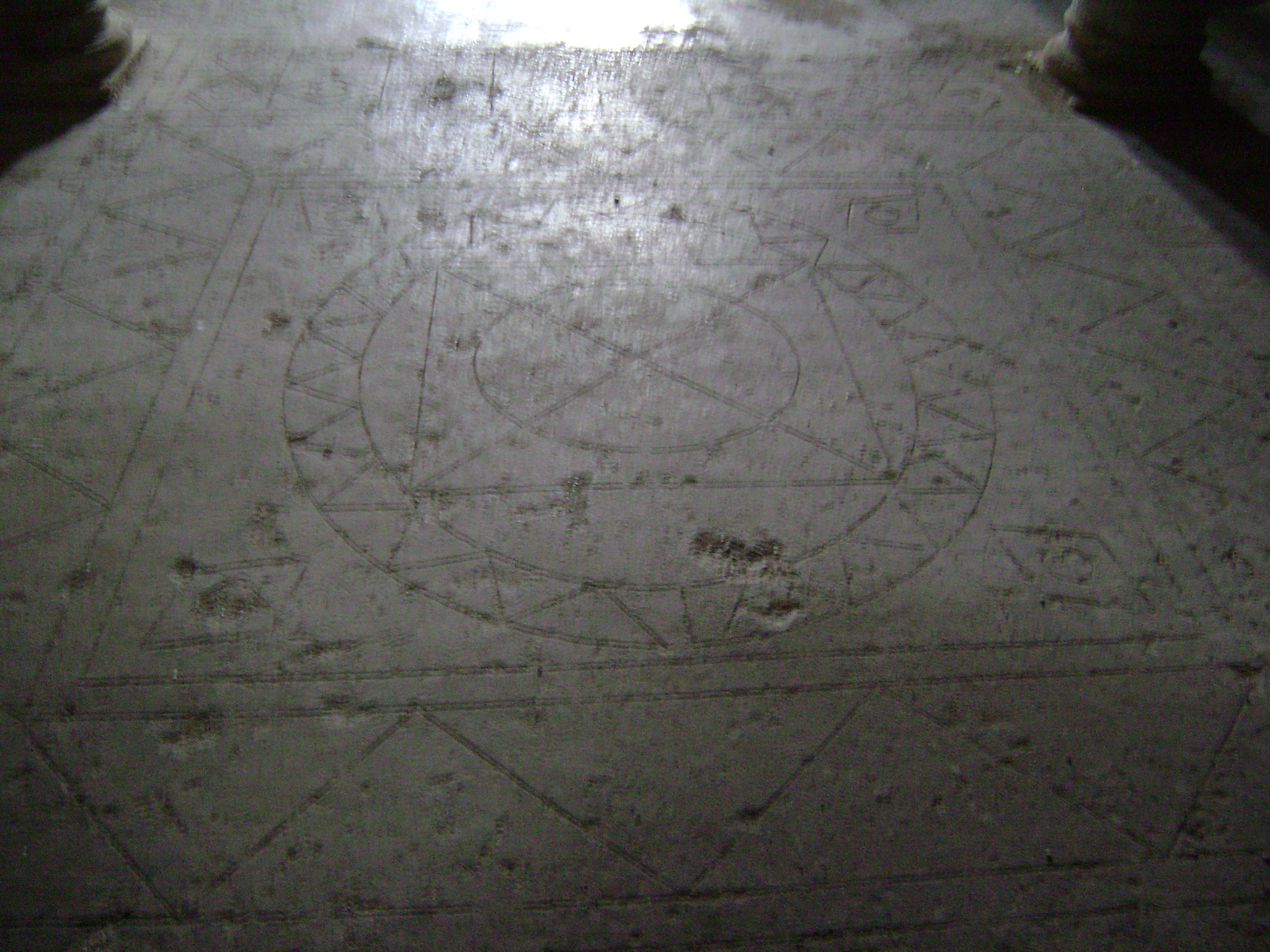 I segni geometrici, d’altronde, sono inequivocabili nel nostro pavimento. Prima di tutto troviamo il quadrato (simbolo del mondo finito, il cerchio: l’infinito ed il centro, il segno del sole, simbolo della energia che si rinnova e non muore mai, è la luce , ma anche simbolo cristologico : “ io sono la Luce del Mondo,” dice Gesù , “ chi segue me non starà più nelle tenebre ma avrà la Vita eterna” ( Gv. 1,5). E poi segni del Triangolo (la Trinità),il pentagono, della stella ed ancora altri purtroppo indecifrabili perché fortemente danneggiati. E tutte queste geometrie hanno un particolare in comune: sono tutte (scartano di pochi millimetri) in “proporzione aurea “ , o “divina proporzione” come dice Luca Pacioli nel suo trattato “de Divina proportione”. Il “ numero d’oro “ ( o divina proporzione),, è un numero che armonizza il corpo umano, non solo, ma tutti gli esseri viventi. Non il regno minerale,inanimato. Anche le Chiese ( e i templi antichi) erano per lo più costruite seguendo questa proporzione. Quindi l’individuo che è per volontà Divina “costruito” secondo la divina proporzione, entrando in una chiesa o,in questo caso nella nostra Cripta, si sente tutt’uno con l’intero ambiente e quindi in perfetta armonia con il Creato ed il Creatore. E posso affermare, senza il minimo dubbio, che ogni qualvolta si entra nella nostra Cripta, si avvertono queste misteriose ma bellissime sensazioni.”