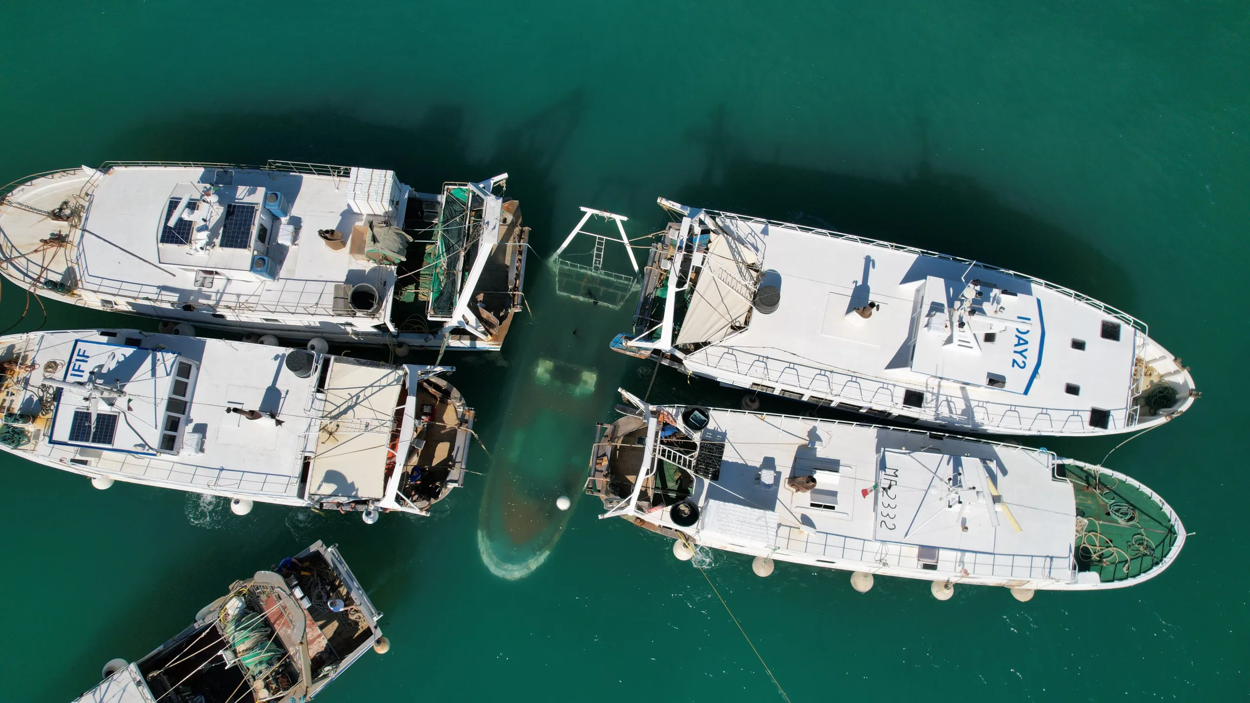 Le operazioni di recupero della barca affondata