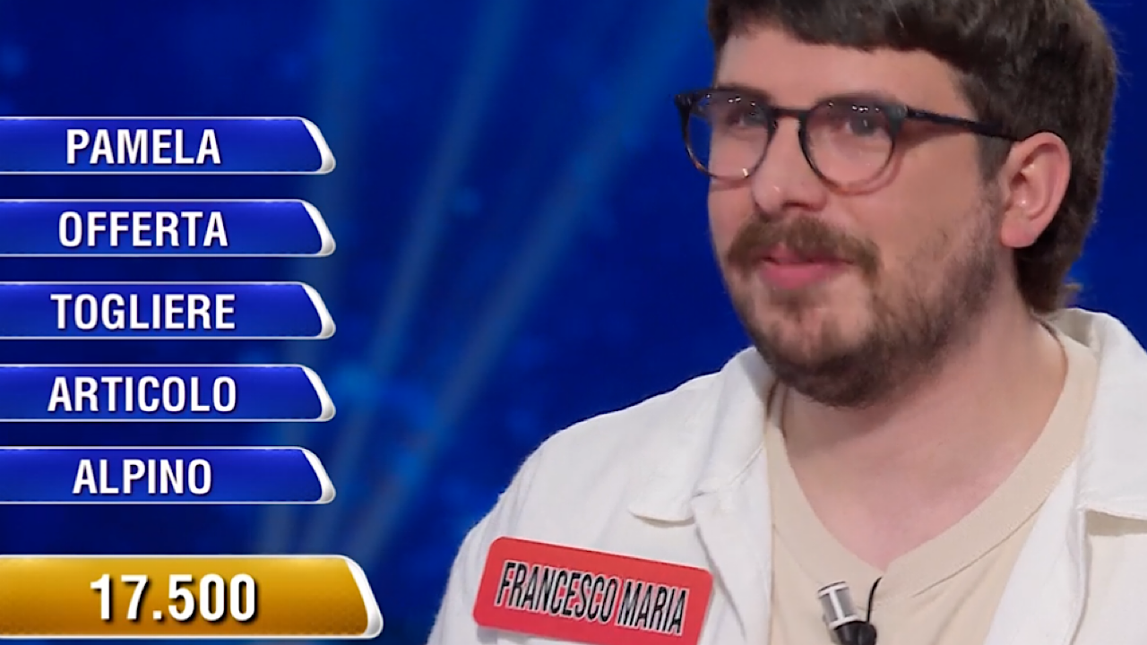 Alla Ghigliottina, questa volta c’era Francesco Maria, con i suoi 140 mila euro da difendere. Dopo vari dimezzamenti, il ragazzo si è ritrovato con 17.500 euro e cinque parole da collegare a quella vincente: Pamela, Offerta, togliere, Articolo, Alpino. Dopo un’attenta riflessione, il ragazzo ha optato per ‘Limite’, commettendo uno sbaglio. La parola corretta era ‘Cappello’.