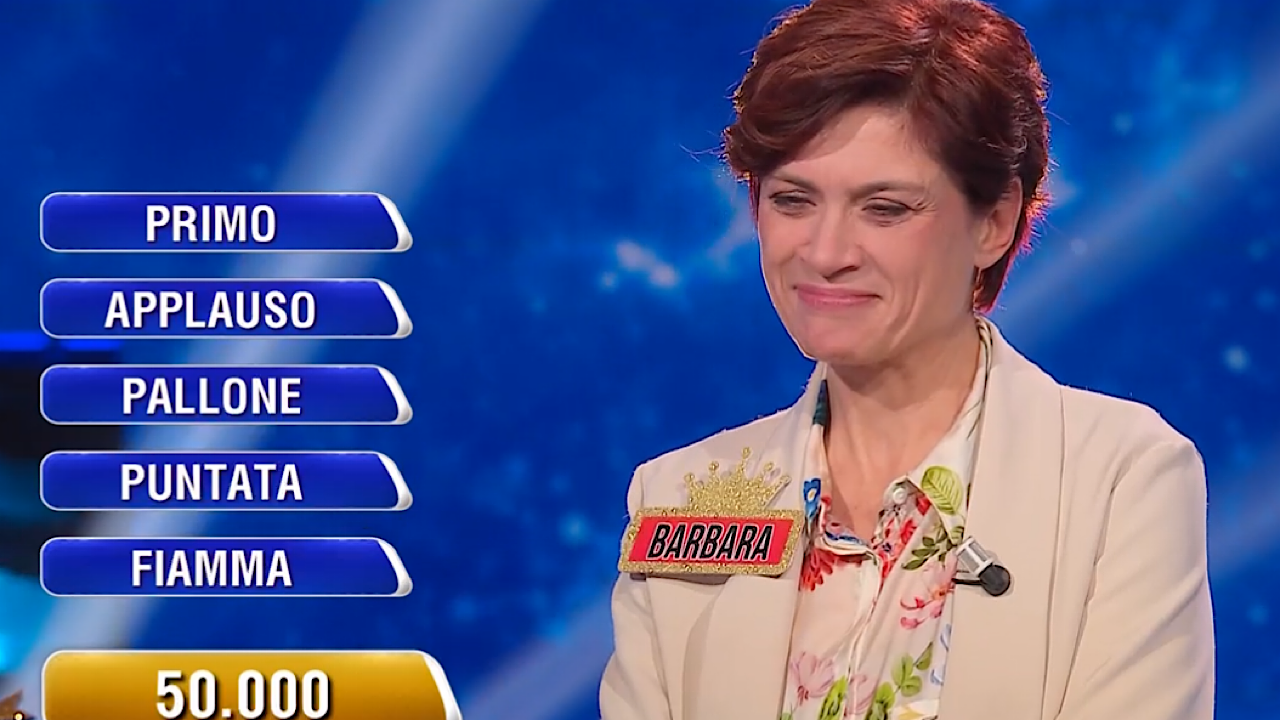 Barbara ha fatto il suo debutto alla Ghigliottina al termine di una partita entusiasmante, dopo aver superato Stefano nel decisivo gioco dei 100 Secondi. In palio c’erano inizialmente 200.000 euro, ma a seguito di alcuni dimezzamenti il montepremi è sceso fino a 50.000 euro. Le cinque parole da collegare erano “Primo”, “Applauso”, “Pallone”, “Puntata” e “Fiamma”, tutte da ricondurre a un’unica soluzione.