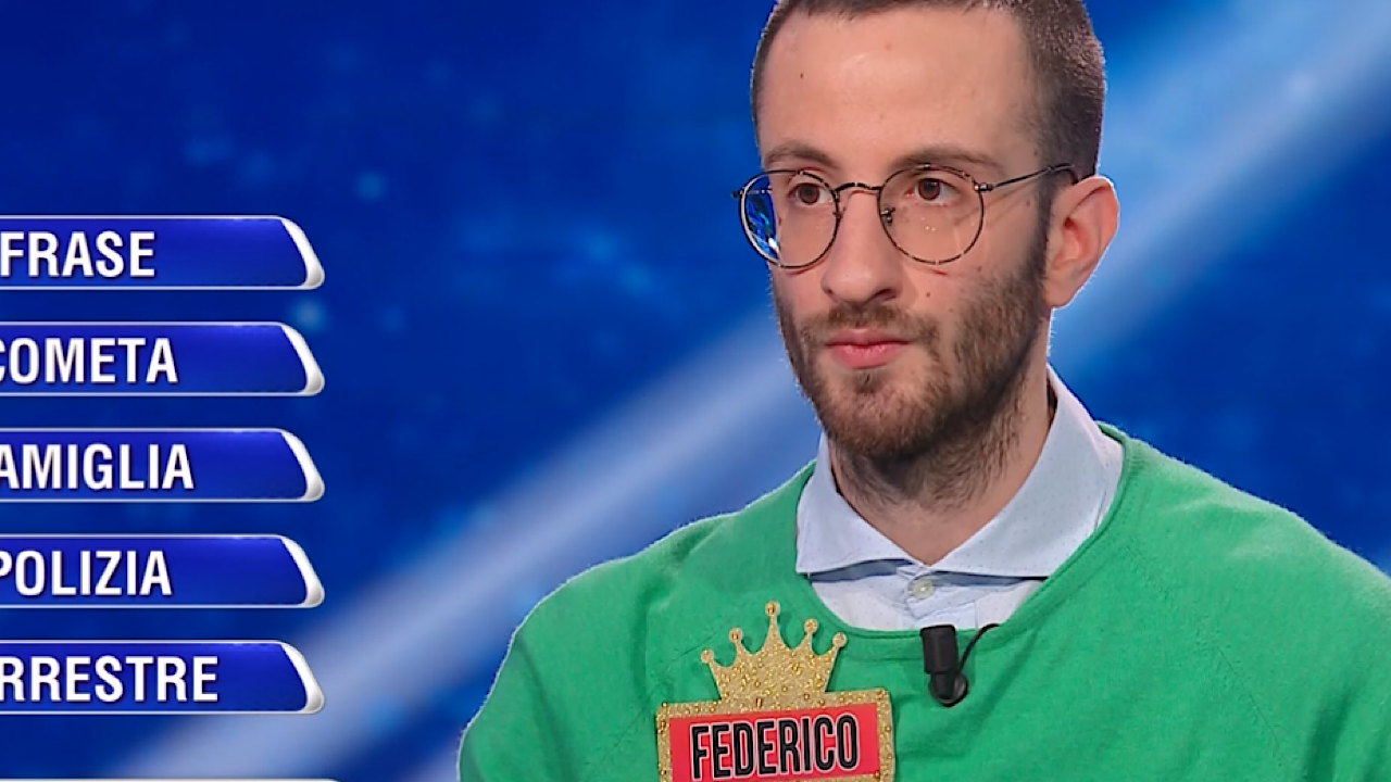 Gli indizi da collegare erano “Frase”, “Cometa”, “Famiglia”, “Polizia” e “Terrestre”. Dopo i consueti dimezzamenti, il montepremi si è ridotto a 11.250 euro. Federico, dopo un’attenta riflessione, ha scelto la parola “Composizione”, ma la soluzione corretta era “Nucleo”. Un altro finale amaro, che lascia ancora una volta l’amaro in bocca nonostante un percorso solido e convincente.