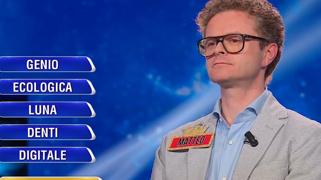 Matteo ha affrontato la prova finale partendo da un montepremi iniziale di 190.000 euro, cifra progressivamente ridotta fino a 23.750 euro dopo i dimezzamenti. Le cinque parole indizio, “Genio”, “Ecologica”, “Luna”, “Denti” e “Digitale”, lo hanno spinto a puntare sulla parola “Generazione”. La soluzione corretta, però, era “Impronta”, chiudendo così la puntata con un finale amaro ma dopo un percorso comunque brillante per il nuovo arrivato.