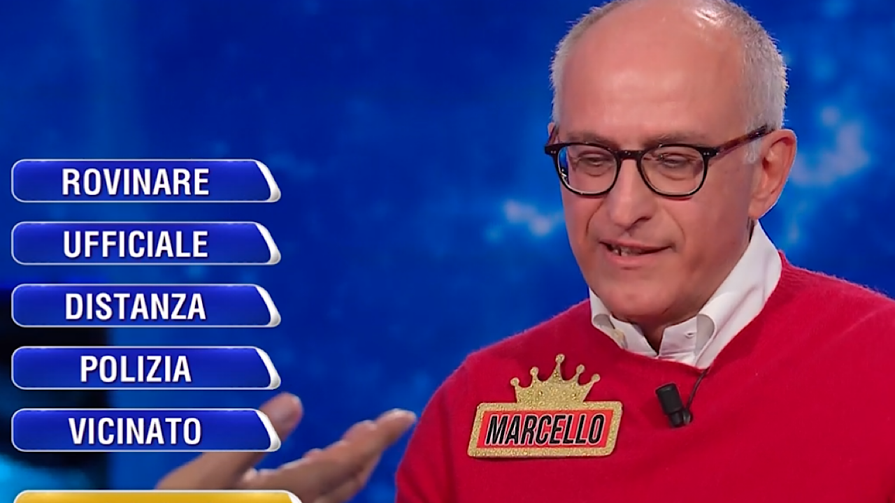 Ancora una volta il campione napoletano ha raggiunto la Ghigliottina, partendo da un montepremi di 180.000 euro, poi dimezzato per quattro volte. Le parole finali erano: “Rovinare – Ufficiale – Distanza – Polizia – Vicinato”. Marcello, fiducioso nelle sue intuizioni, ha scelto la parola “Controllo”. La soluzione corretta, però, era “Rapporto”, che valeva 11.250 euro. Anche stavolta, quindi, non è riuscito a portare a casa la vittoria finale.