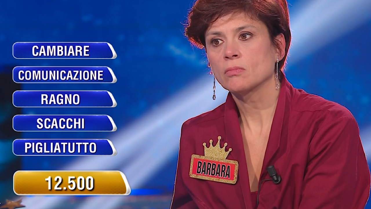 Il montepremi finale ammontava a 12.500 euro in gettoni d’oro. Le cinque parole da collegare erano “Cambiare”, “Comunicazione”, “Ragno”, “Scacchi” e “Pigliatutto”. Barbara ha puntato sulla parola “Regina”, ma la risposta non si è rivelata corretta. La soluzione giusta era “Strategia”, che le avrebbe consentito di conquistare la vittoria. Un’altra occasione sfumata, che non cancella però la determinazione e la voglia di riscatto dimostrate dalla campionessa.