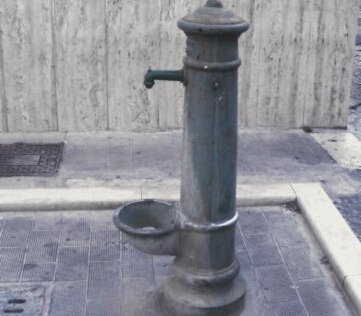 Città, una città che ripugna le fontane, che fa diventare asettica l’ambiente. Noi siamo nati per l’acqua, come tu” Largo Teatro Vecchio” sei nato per stare in vista alla tua terra natia… fare scrosciare l’acqua per dare decoro alla città – in quella via oramai secca e scheletrica in abbandono.