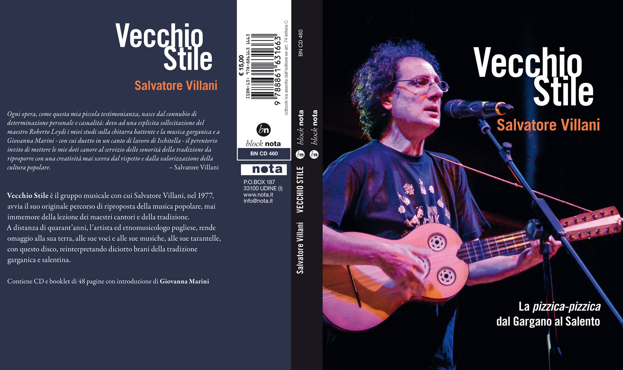 Ricorderà il suo giovane amico Antonio Facenna di Carpino, giovane pastore di 23 anni, prematuramente scomparso nel 2014. Ci parlerà della “pizzica-pizzica” dal Gargano al Salento, con l’esecuzione della pizzica di Monte Sant’Angelo di Michele Stuppiello, conosciuto nel 1983, e quella di Nardò di Luigi Stifani. Riproporrà un canto di serenata di San Nicandro Garganico, registrato da padre Remigio de Cristofaro con la RAI nel 1966, a cui è molto legato e di cui è stato realizzato un video da Silvio Orlando per la promozione del CD, e la Tarantella Sannicandrese del 1954, registrata da Lomax e Carpitella. Proseguirà con un canto della tradizione di Ischitella, solo voce e chitarra battente, utilizzando i fili dei freni della bicicletta come corde, ricordando il suo maestro e amico Rocco Castelluccia detto ‘a prëkockë’. Il viaggio continuerà con un canto polivocale narrativo con i Cantori di Mattinata, una tarantella di San Giovanni Rotondo, ‘alla cerignulana’, un canto sull’ emigrazione di Cagnano Varano, un canto all’aria con le Cantatrici di Ischitella e un brano originale scritto nel 2010 da Salvatore Villani, che chiude il CD ‘Vecchio Stile’, dal titolo ‘Amico Giorgio’, dedicato a Giorgio Ruberto di Chieuti, con tre piccoli interventi in lingua arbëreshë e con la presenza nel CD dell’amico Teo Ciavarella.