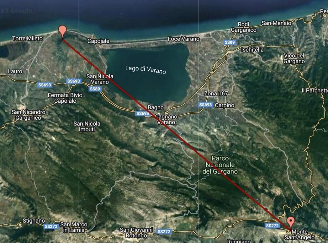 Noi battezzammo tale linea garganica “Il Volo dell’Angelo”, immaginando San Michele volare verso la sua dimora prescelta di Monte Sant’Angelo.