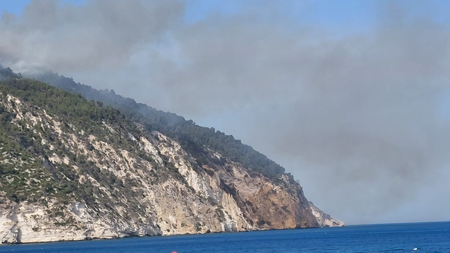 L'intervento dei vigili del fuoco per spegnere l'incendio di oggi a Baia delle Zagare