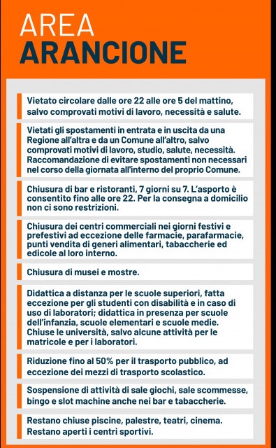 Da lunedì 28 dicembre tutta l’Italia cambia colore: si passa in zona arancione nei giorni 28, 29, 30 dicembre e 4 gennaio.