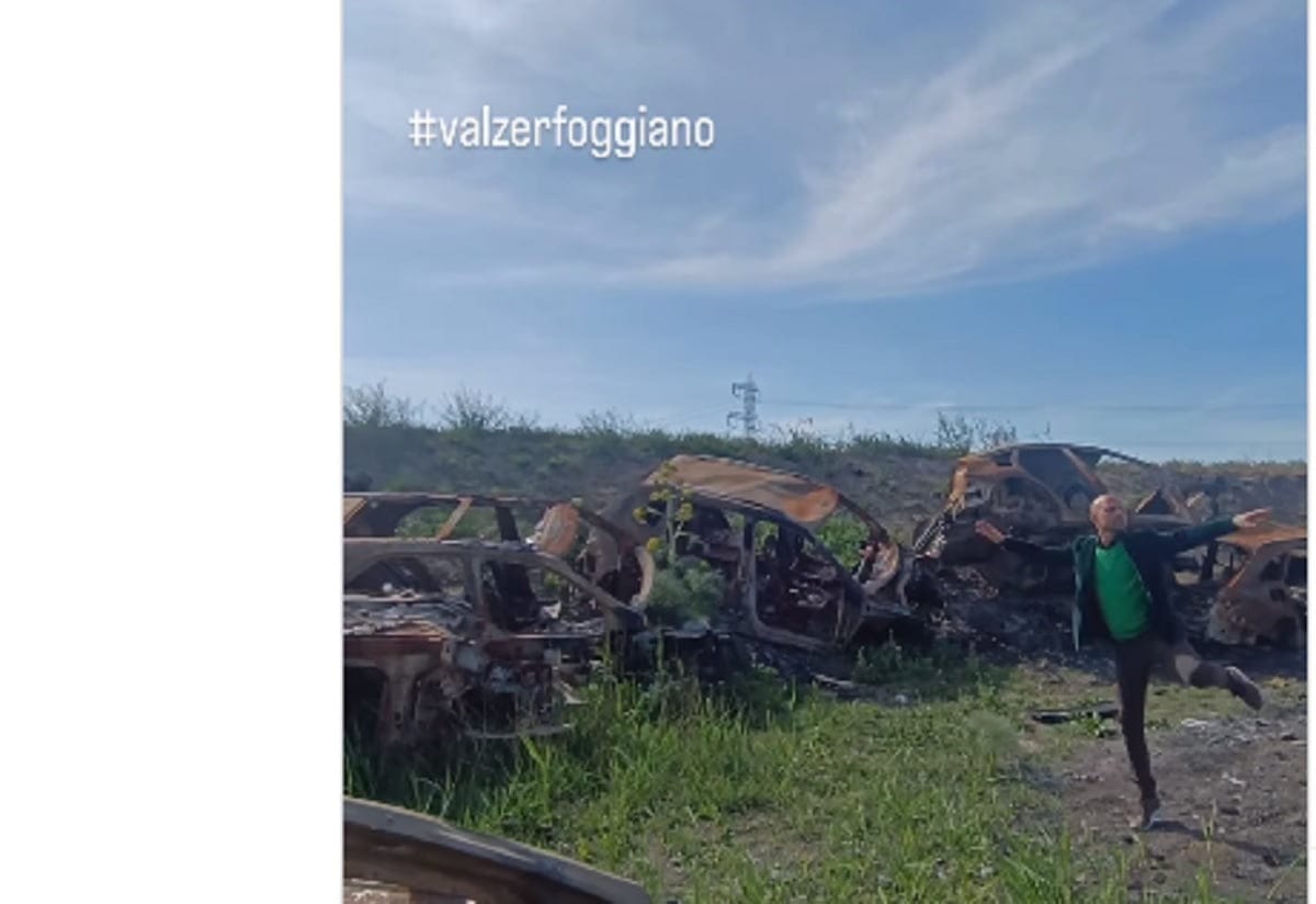 L’inviato di Striscia Luca Abete è tornato tra le carcasse di auto nel foggiano e lo si vede in una storia pubblicata sul proprio account Instagram.
