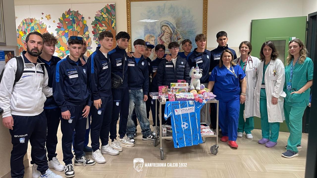 Oggi pomeriggio lo staff e la squadra Under 17 del Manfredonia Calcio hanno fatto visita ai piccoli pazienti del reparto di oncoematologia pediatrica di Casa Sollievo della Sofferenza, portando con sé non solo giocattoli e una maglia ufficiale della prima squadra, ma soprattutto un sorriso, un abbraccio, una speranza.