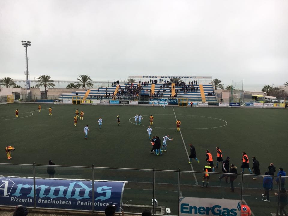 MANFREDONIA (4-3-3): Tarolli; Fiore, Romeo, D’Angelo, Raho; Coccia (4’ st Cicerelli), Romito, Pazienza; La Porta Malcore (45’ st Esposito), Molenda (27’ st De Filippo).