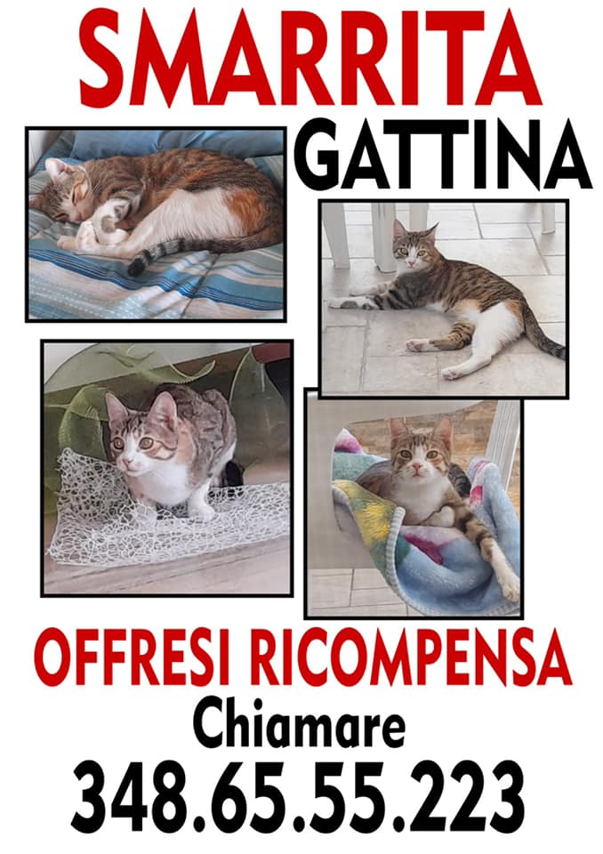 Manfredonia, aiutiamo questa famiglia a ritrovare la propria gattina Redazione 17 Luglio 2021 Smarrita nei pressi del Parco Giochi del Cimitero Articoli correlati Omicidio Carta: l’ombra della morte di un giovane Confcommercio Foggia: Peppe Zullo nominato “Maestro del Made in Italy”