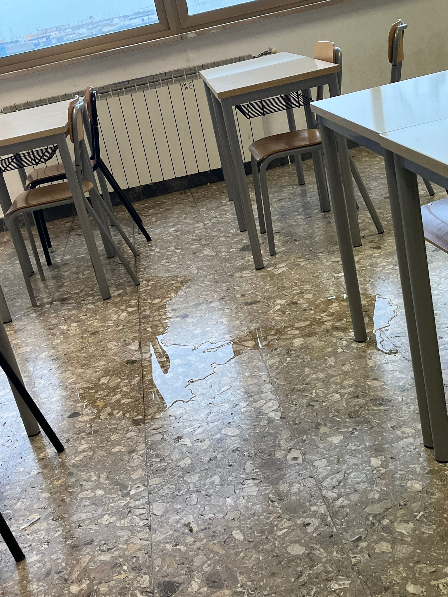 Buongiorno, invio alcune immagini relative alla situazione presente questa mattina all’interno dell’istituto IISS Toniolo di Manfredonia riguardanti all’allagamento delle classi e della palestra a causa degli infissi e della struttura antica.