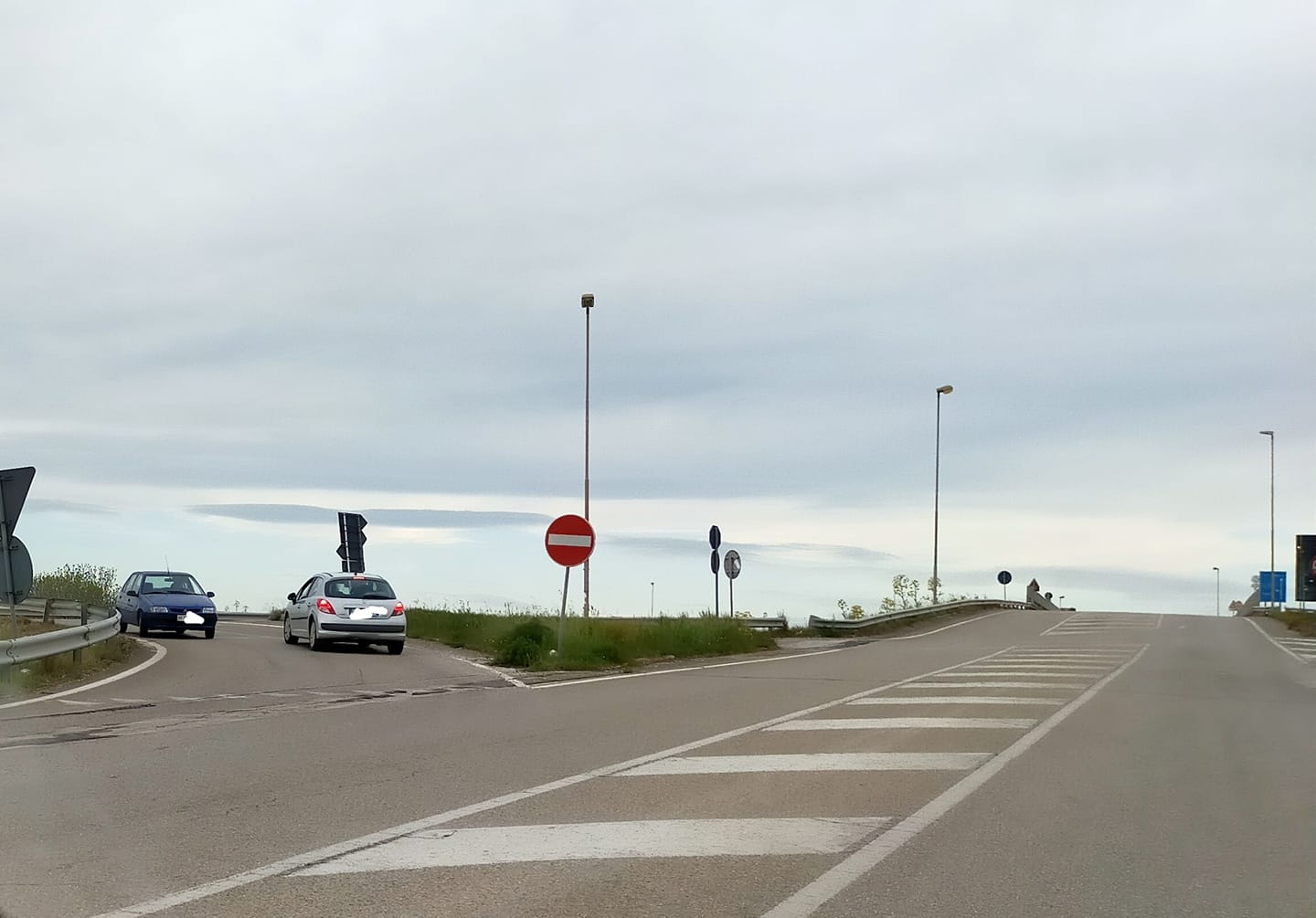 Una automobilista prende contromano la strada che immette sulla SS.89 direzione Foggia sullo svincolo, uscita Manfredonia Centro.