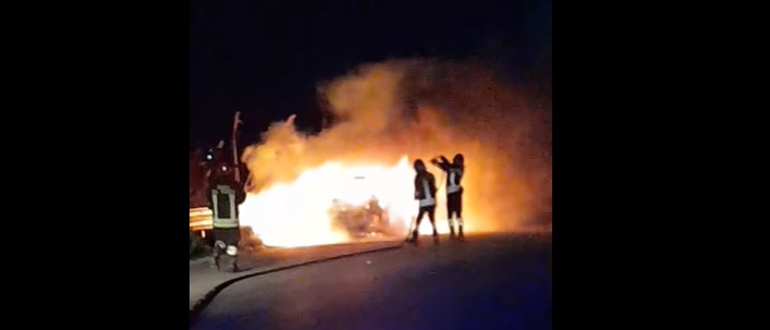 Un’auto in fiamme, ieri sera intorno alle ore 22, sulla strada provinciale 141 per le saline al km.4 prima del ponte torrente Candelaro.