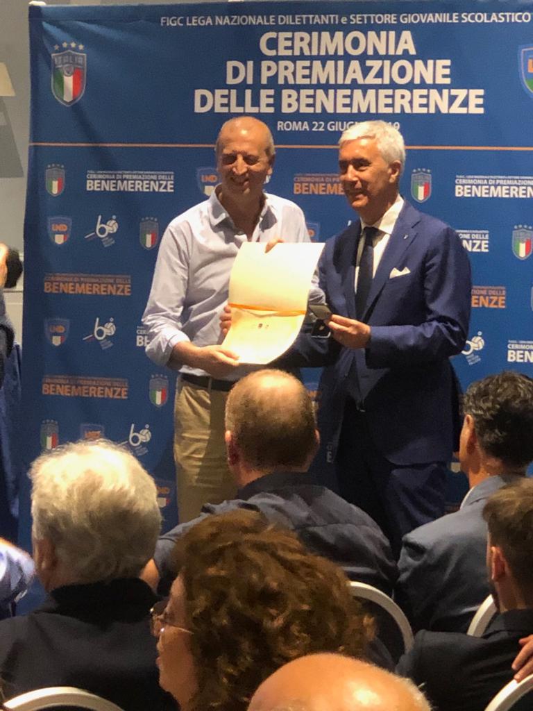 Ieri, sabato 22 Giugno, a Roma, alla CERIMONIA DI PREMIAZIONE DELLE BENEMERENZE della F.I.G.C.- L.N.D. presieduta dal Presidente della F.I.G.C. dott. Gabriele GRAVINA e dal Presidente della L.N.D. dott. Cosimo SIBILIA, sono stati assegnati degli attestati di benemeranza per l’impegno profuso nel settore sportivo.