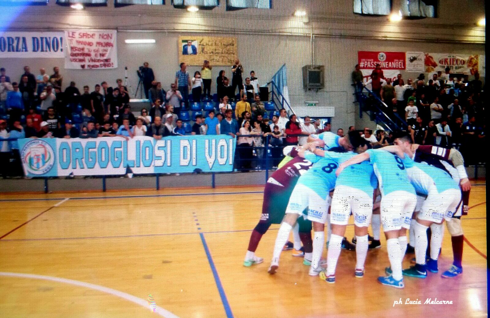 La partita, dalla fortissima tensione, ha messo in difficoltà le coronarie della massa dei tifosi accorsi in un pomeriggio caldissimo a rinvigorire questa pazza corsa del Manfredonia C5 verso la Serie A. E si è giocato contro ogni ostacolo, contro gli acciacchi vari che in questo finale di stagione stanno falcidiando la rosa a disposizione e contro una direzione di gara molto ma molto mediocre, tenendo conto che si arbitrava una partita valida per la promozione in Serie A.