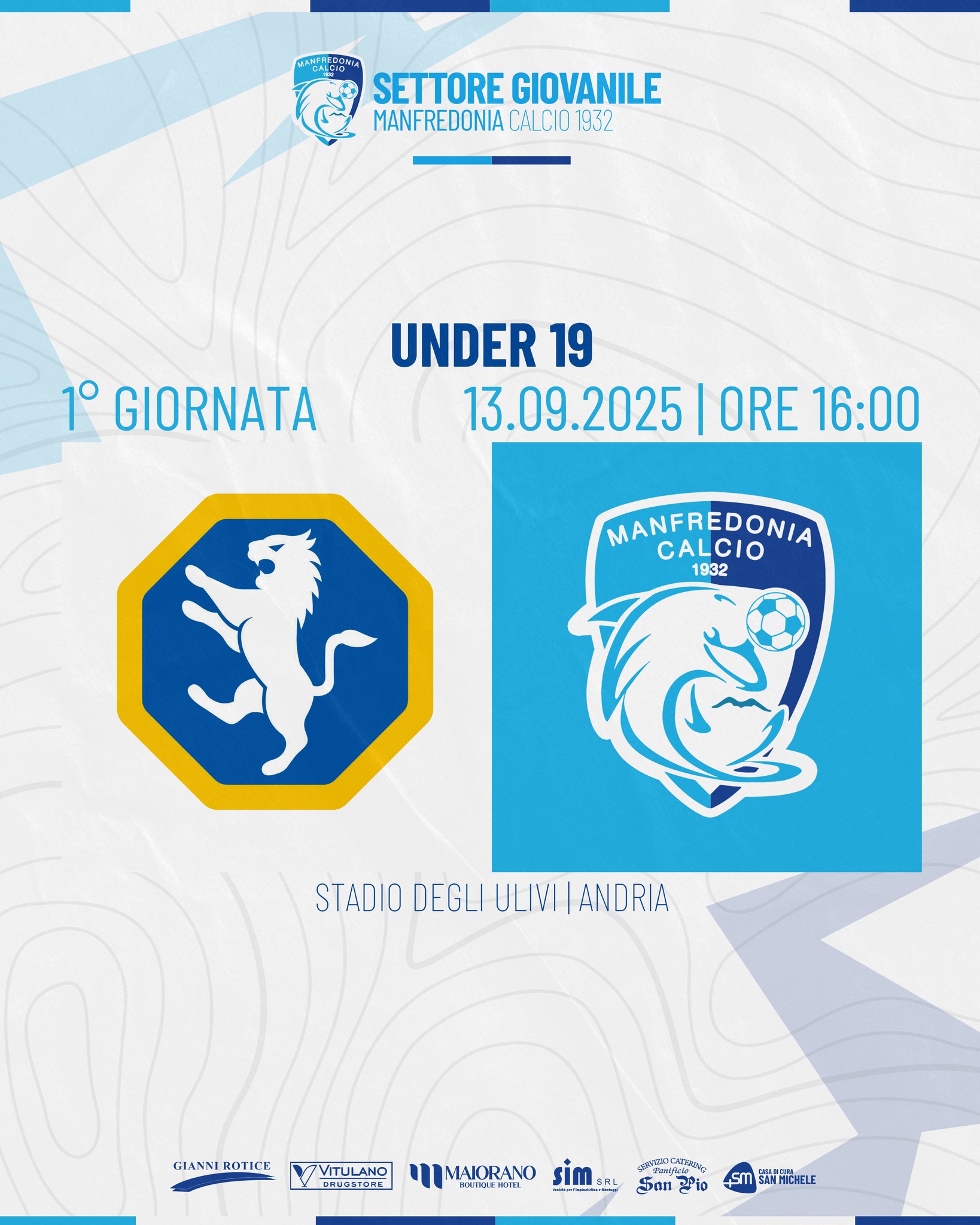 L’ Under 19 di mister Telera sarà impegnata nella prima giornata di campionato allo stadio Degli Ulivi di Andria.