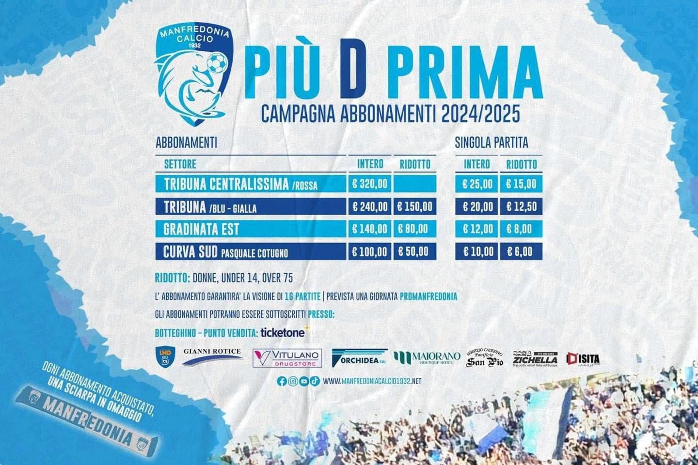 Serve assolutamente un segnale concreto nell’immediatezza per creare quell’entusiasmo vitale sia per la squadra che per la società, rappresentato dallo stadio, speriamo pieno, a poche settimane dall’inizio del stagione 2024/25. Forza ad abbonarsi e sostenere con la forza i colori del Manfredonia Calcio. Forza Manfredonia.