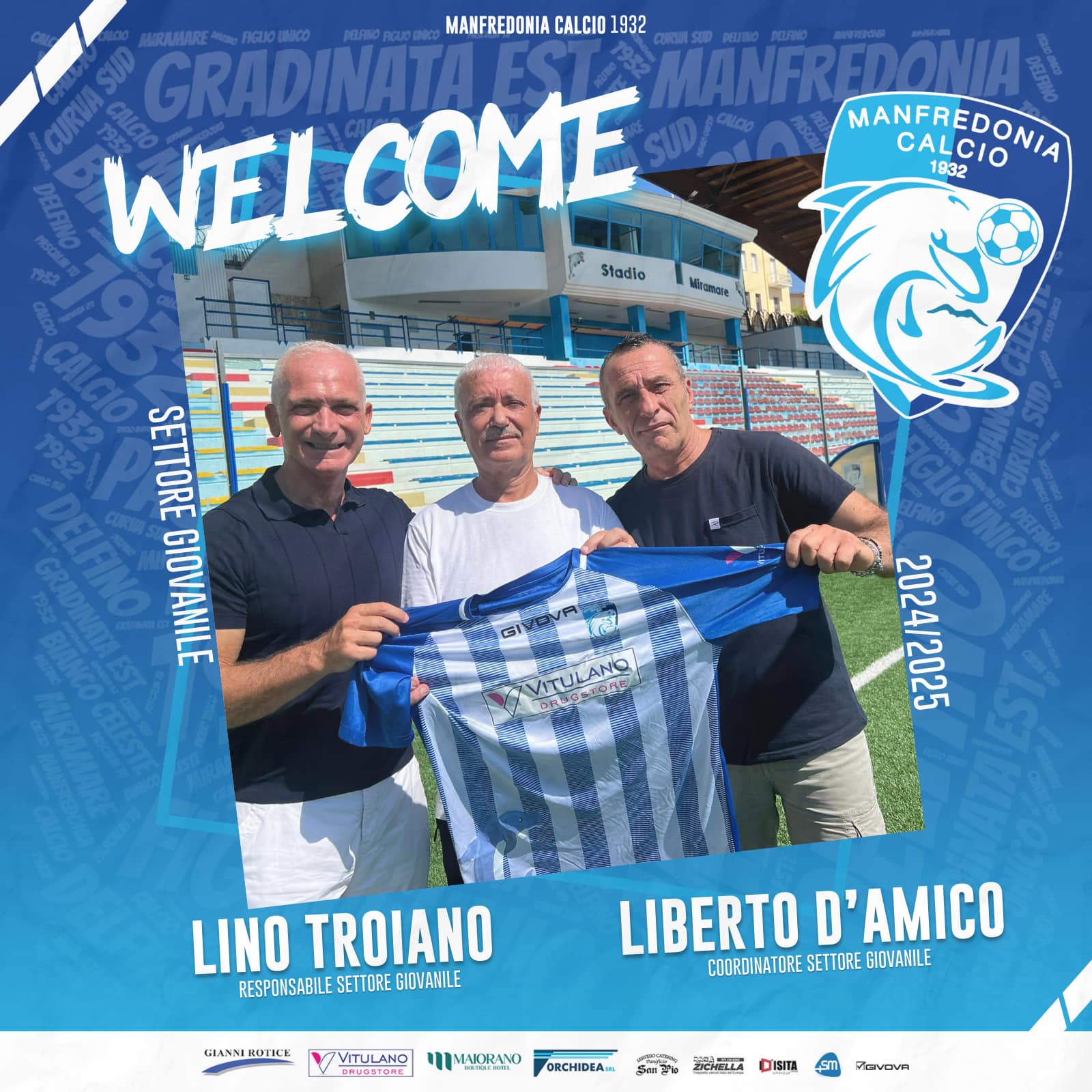 Il Manfredonia Calcio 1932 comunica il completamento dello staff del Settore Giovanile per la stagione 2024/2025 con la nomina di Pasquale (Lino) Troiano a Responsabile e di Liberto D’Amico a Coordinatore.