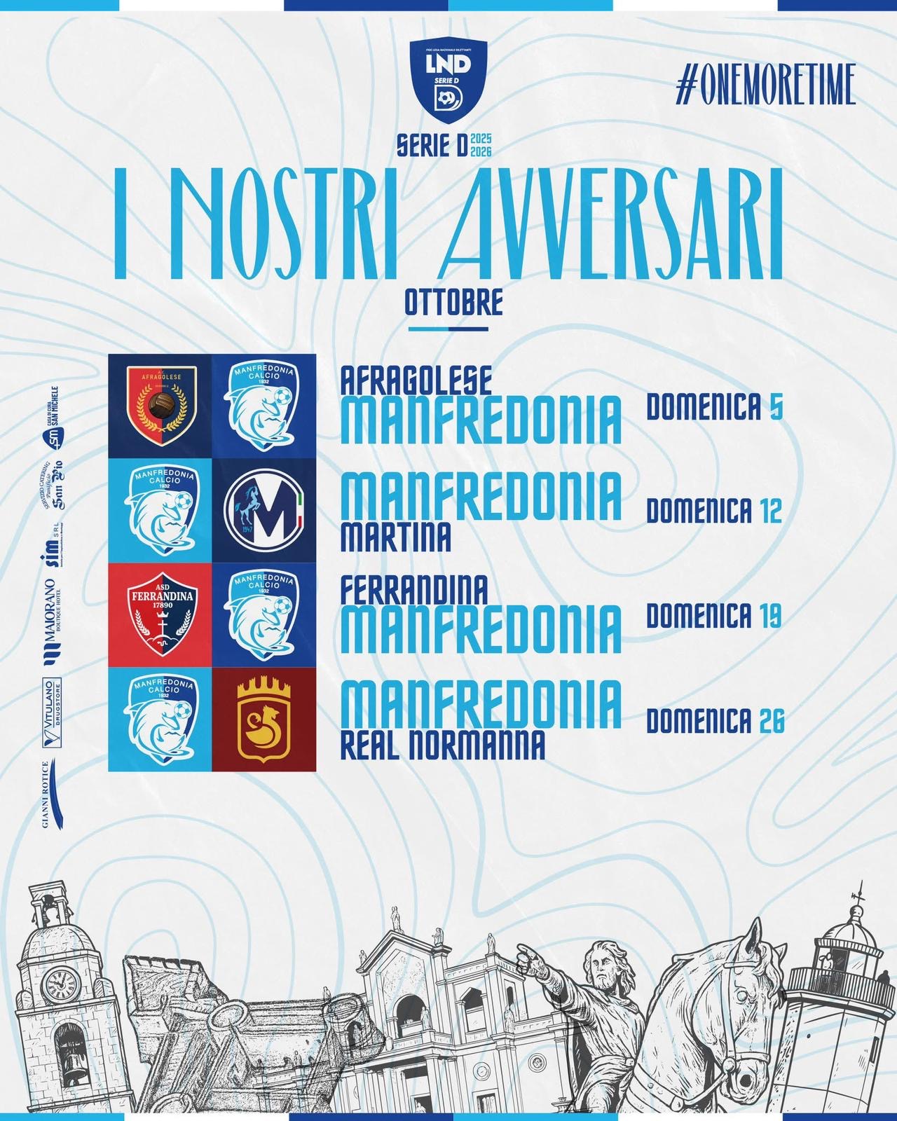 Un mese intenso attende il Manfredonia Calcio 1932: si parte questa domenica ad Afragola, per poi affrontare una serie di sfide emozionanti fino all’ultima domenica di ottobre, quando al Miramare chiuderemo il mese davanti ai nostri tifosi contro il Real Normanna.