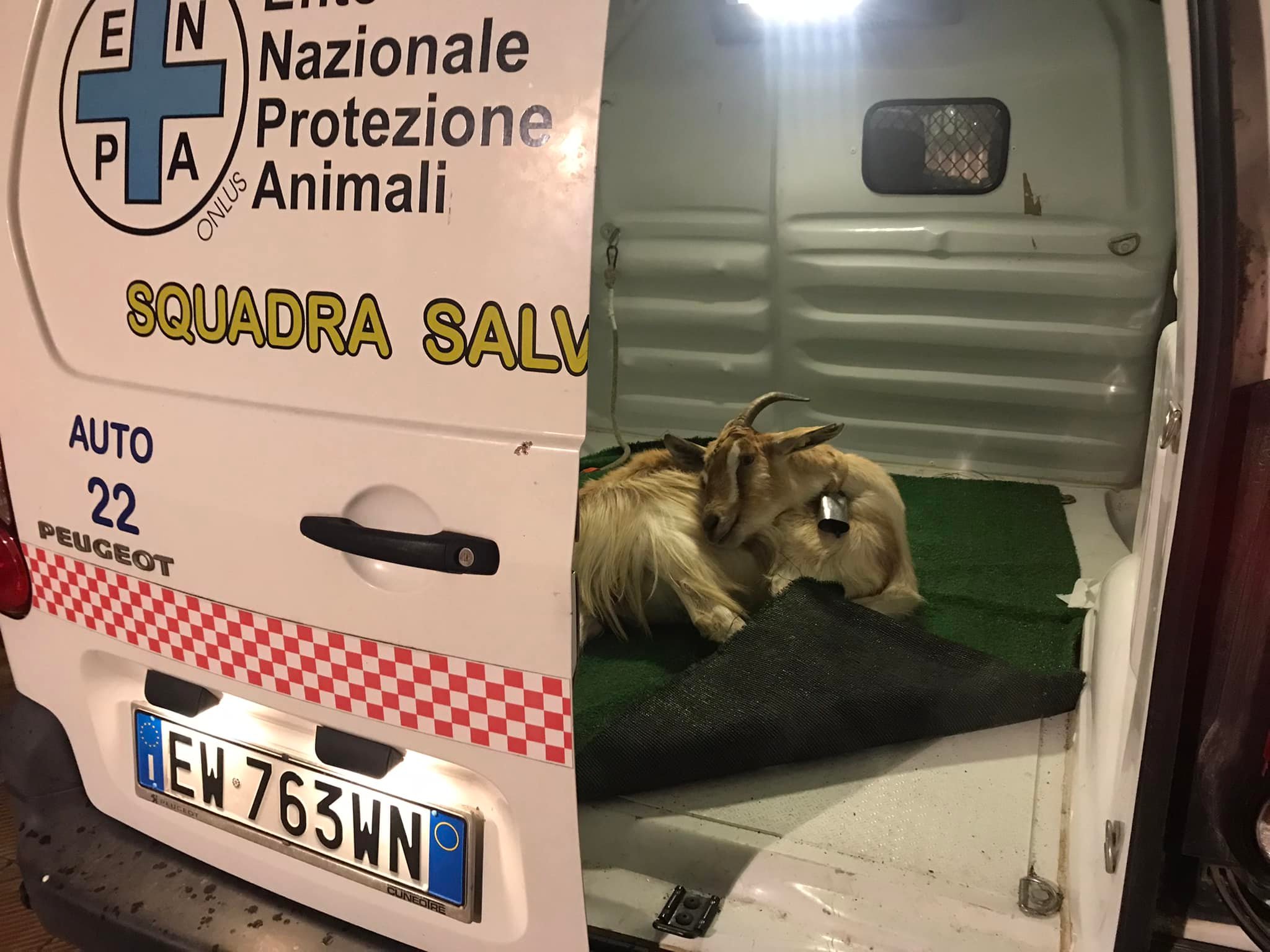 Ieri, alle ore 17.00, su segnalazione della Polizia Locale e con il veterinario reperibile Asl, abbiamo recuperato questa capra che vagava nel centro della città.