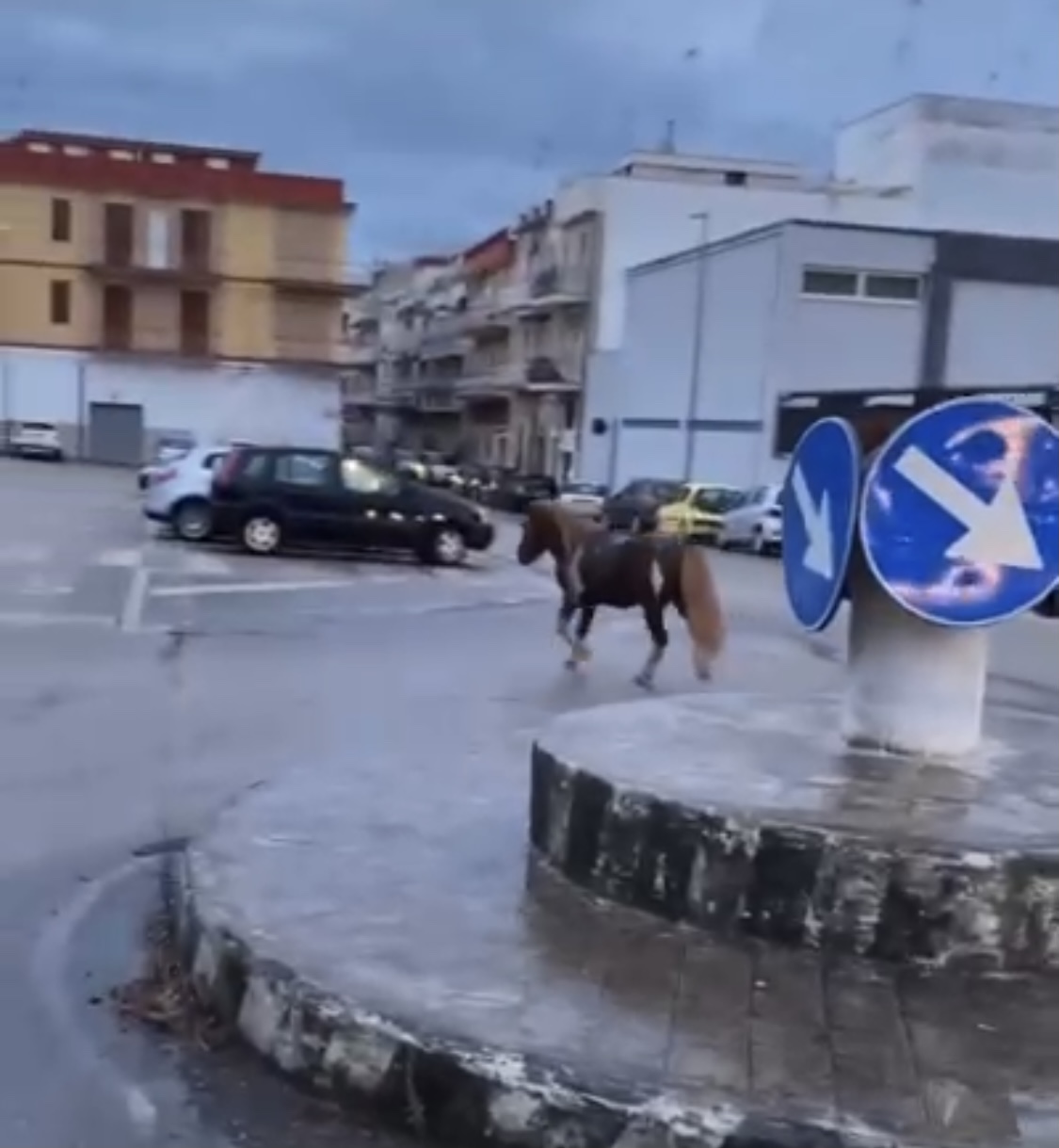Un cavallo è stato immortalato in città per le strade di Manfredonia nel pomeriggio odierno, nei pressi del Pronto Soccorso dell’Ospedale San Camillo de Lellis.