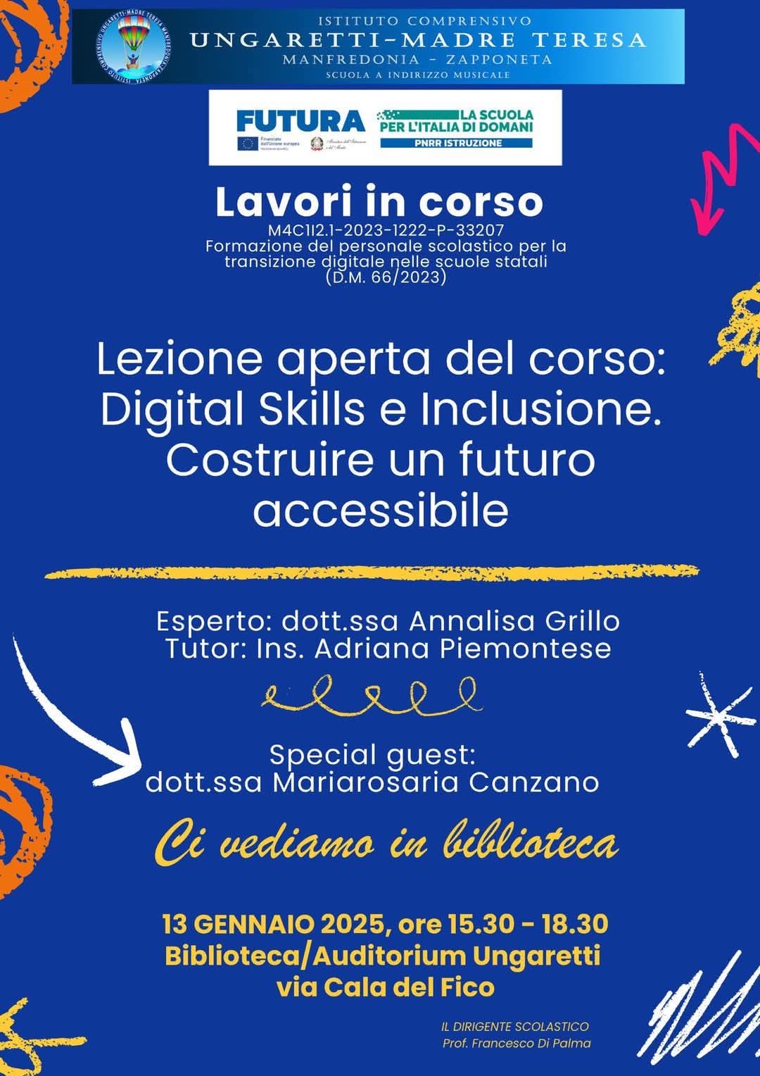 Accanto a lei, interverrà l’Esperto dott.ssa Annalisa Grillo, la Tutor ins. Adriana Piemontese. L’incontro sarà un’occasione per condividere esperienze, presentare strategie concrete e sensibilizzare sulla necessità di un approccio inclusivo e consapevole nei confronti di bambini, ragazzi e adulti nello spettro autistico.