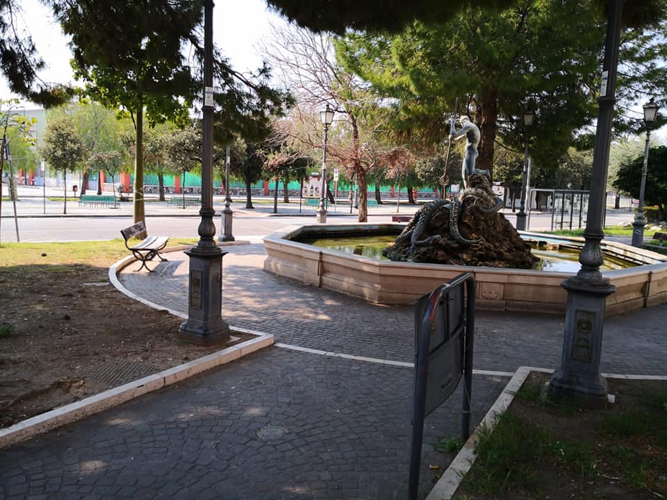 col vestito bianco a pois rosso, varcava anche lei ,un po’ paurosa la porta di legno marrone del Comune, lungo il corridoio si aggiravano figure vestite di bianco col vaccino pronto da iniettare ad ogni cittadino messo in coda. A Manfredonia si mangiava pane caldo e qualche cibo bollito. Intanto il tramonto aveva preso posto al giorno e stava passando le ore alla sera. In Piazza Marconi, zampilli d’acqua passavano tra il corpo del pescatore con il tridente. Nell’estate del colera rividi dopo la ragazzina giocare alla fontana.