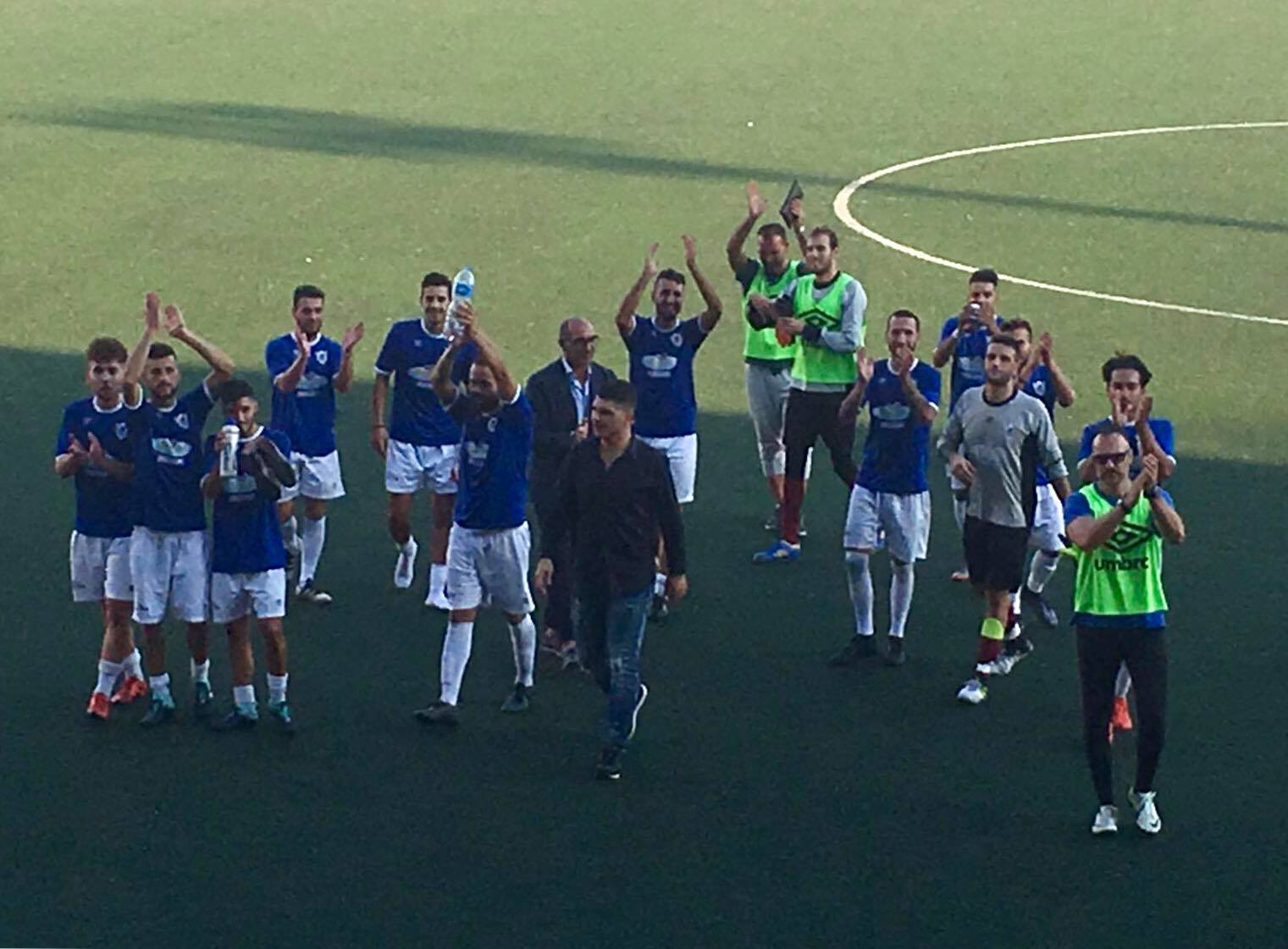 La gara, nonostante il caldo che ha leggermente influito sulla prestazione di entrambe le compagini (abituate ad allenamenti serali) si mette subito sul binario giusto per i blues, ben messi in campo, che dopo una prima fase di studio e dopo aver sfiorato il vantaggio con Giaccone e Lupoli in un paio di occasioni, la sbloccano al 23’ con Pierpaolo Totaro, abile ad entrare in area da sinistra ed insaccare all’incrocio, chiudendo al meglio l’azione collettiva.
