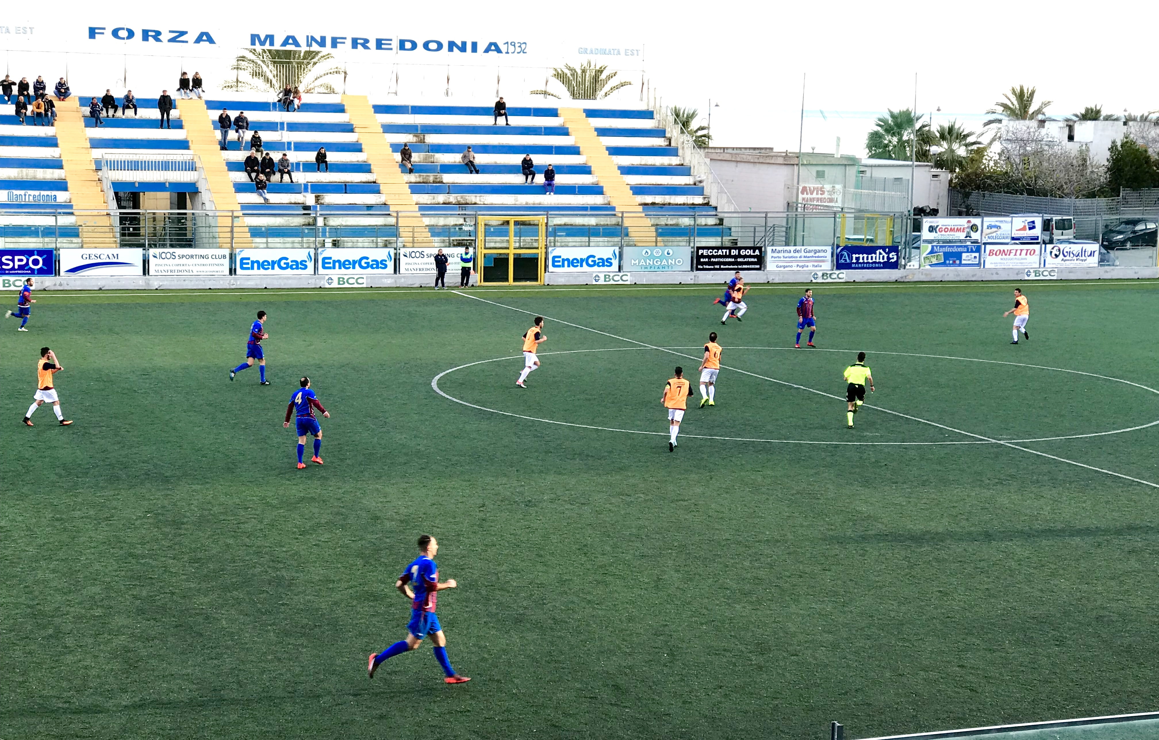 MANFREDONIA F.C. (3-5-2): Di Bari; Di Mauro A. (14’st Vitulano), Paglione, De Fabritiis (30’st Tedesco); Palumbo, Prencipe, Ciullo, Lupoli; P. Totaro, Vaccarella (40’st Vergura). A disp. Armiento, A. Gramazio, M. Gramazio, Fiotta. All. Elia Gravinese