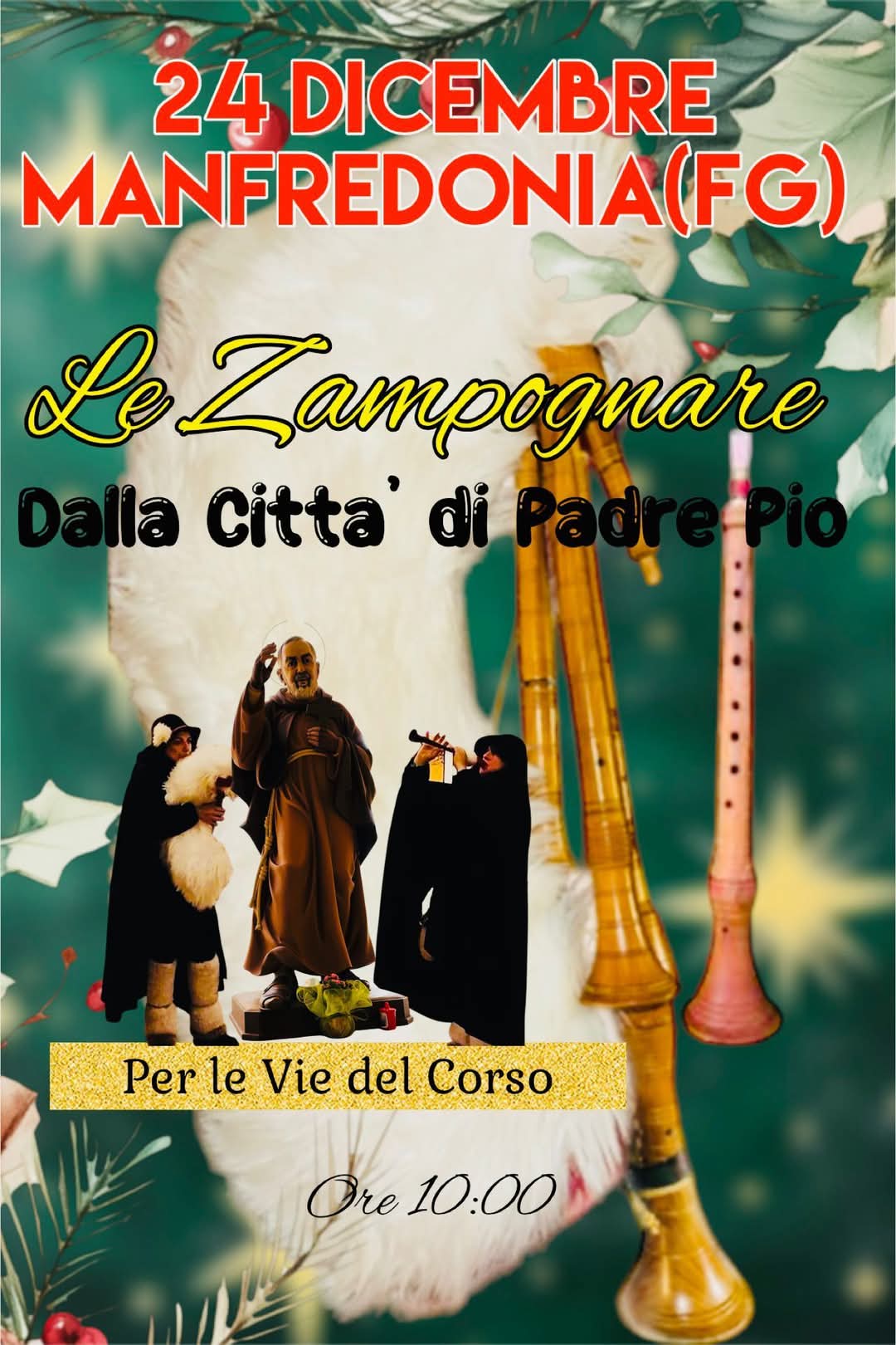 La vigilia di Natale il 24 mattina dalle ore 10.00 su Corso Manfredi, tornano “Le Zampognare della Città Di San Pio” , . coordinate da Ciro Murgo, allieteranno tutti con le note Natalizie, vi aspettiamo…