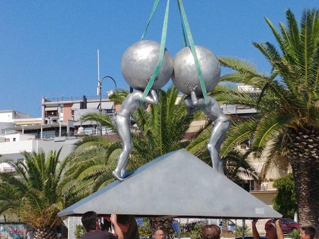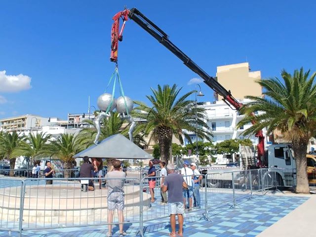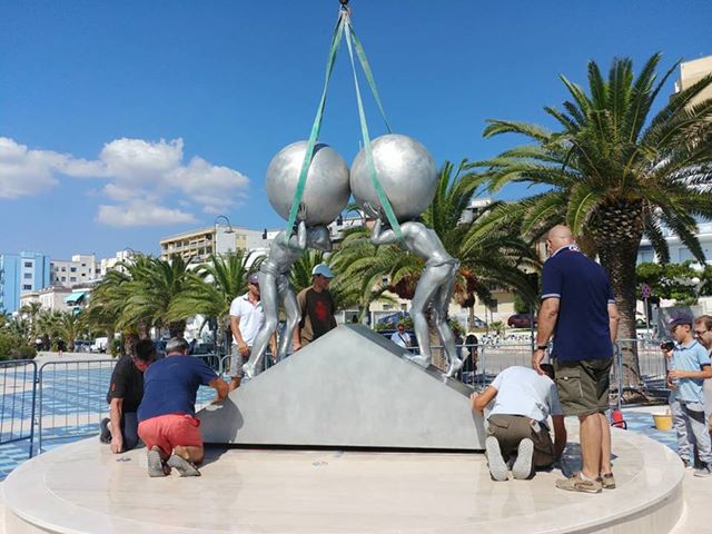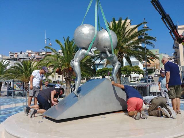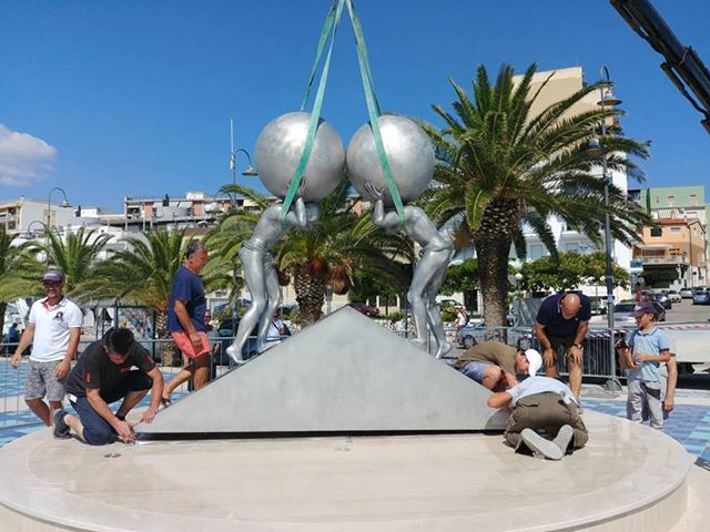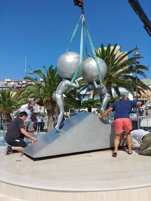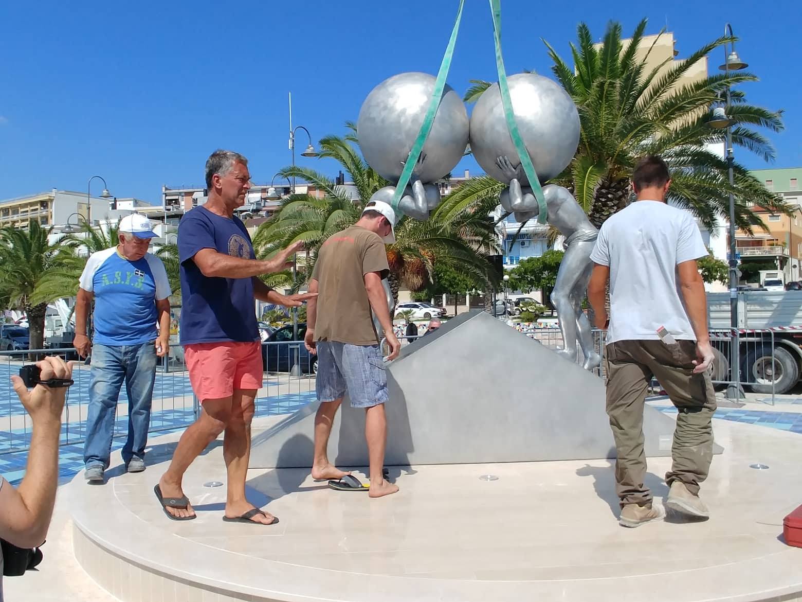 Manfredonia, in corso la sistemazione della scultura di Lettl alla Rotonda. Foto Matteo Nuzziello