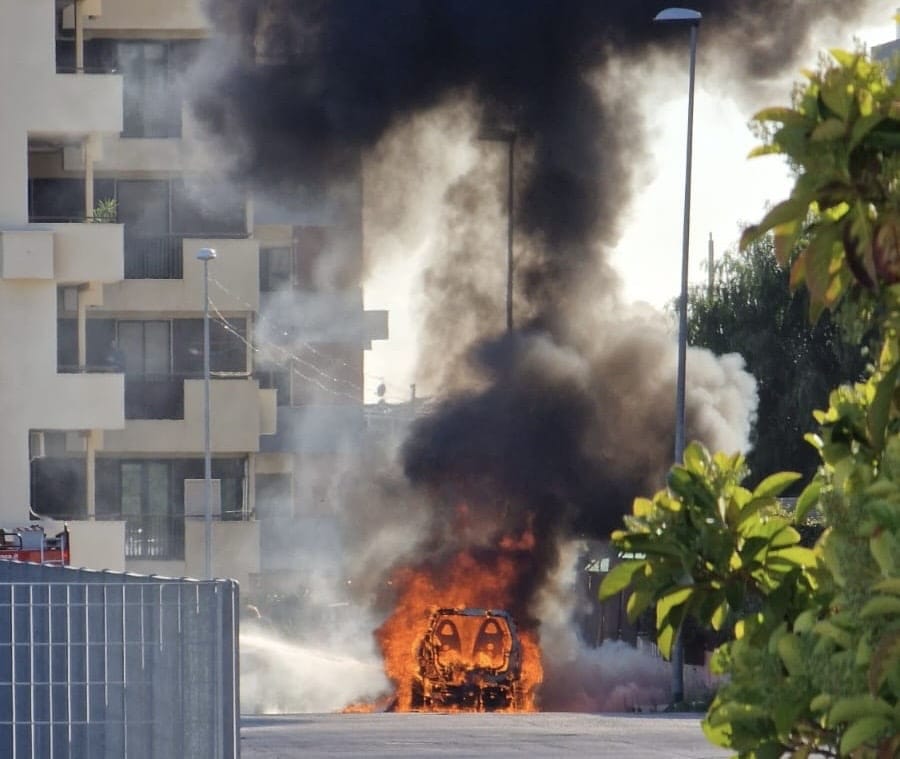 Una Smart è stata avvolta dalle fiamme intorno alle 15.45 di questo pomeriggio a Manfredonia, in zona Parchi, in Via Aviere Castriotta, nei pressi della Palestra-Piscina Icos.
