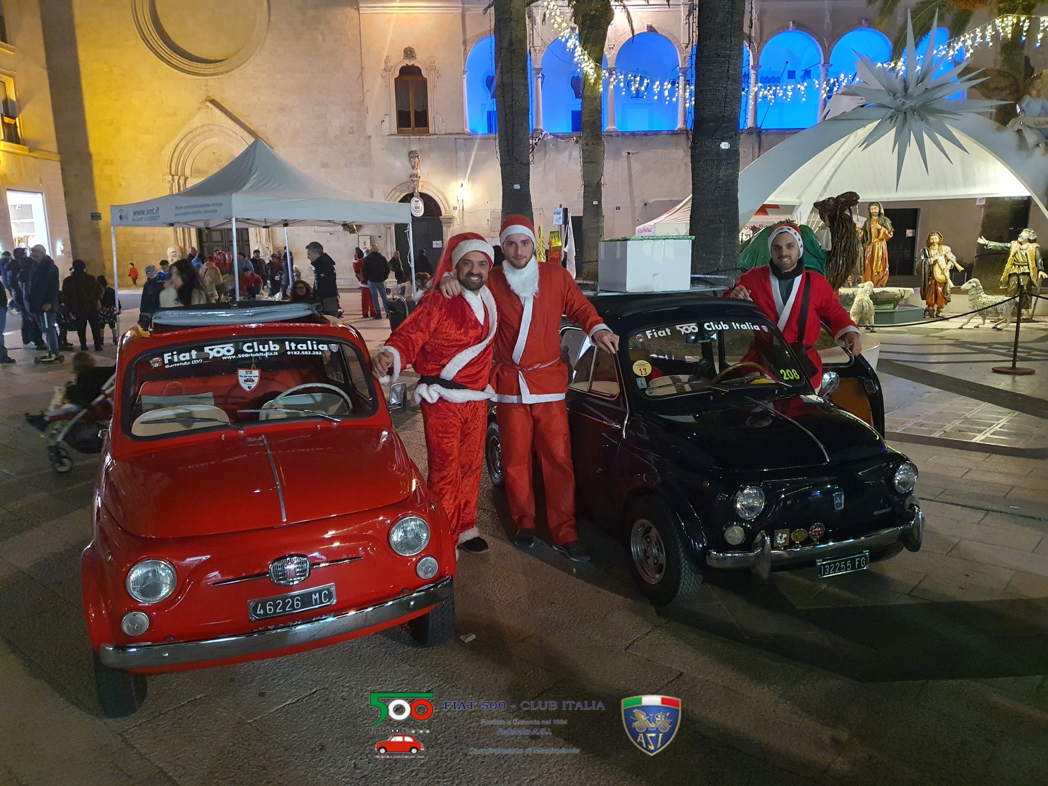 Una bellissima pattuglia di Fiat 500 storiche, moto e Vespa, con tanti Babbo Natale a bordo, è in arrivo la sera del 21 dicembre 2024 in città, a Manfredonia.