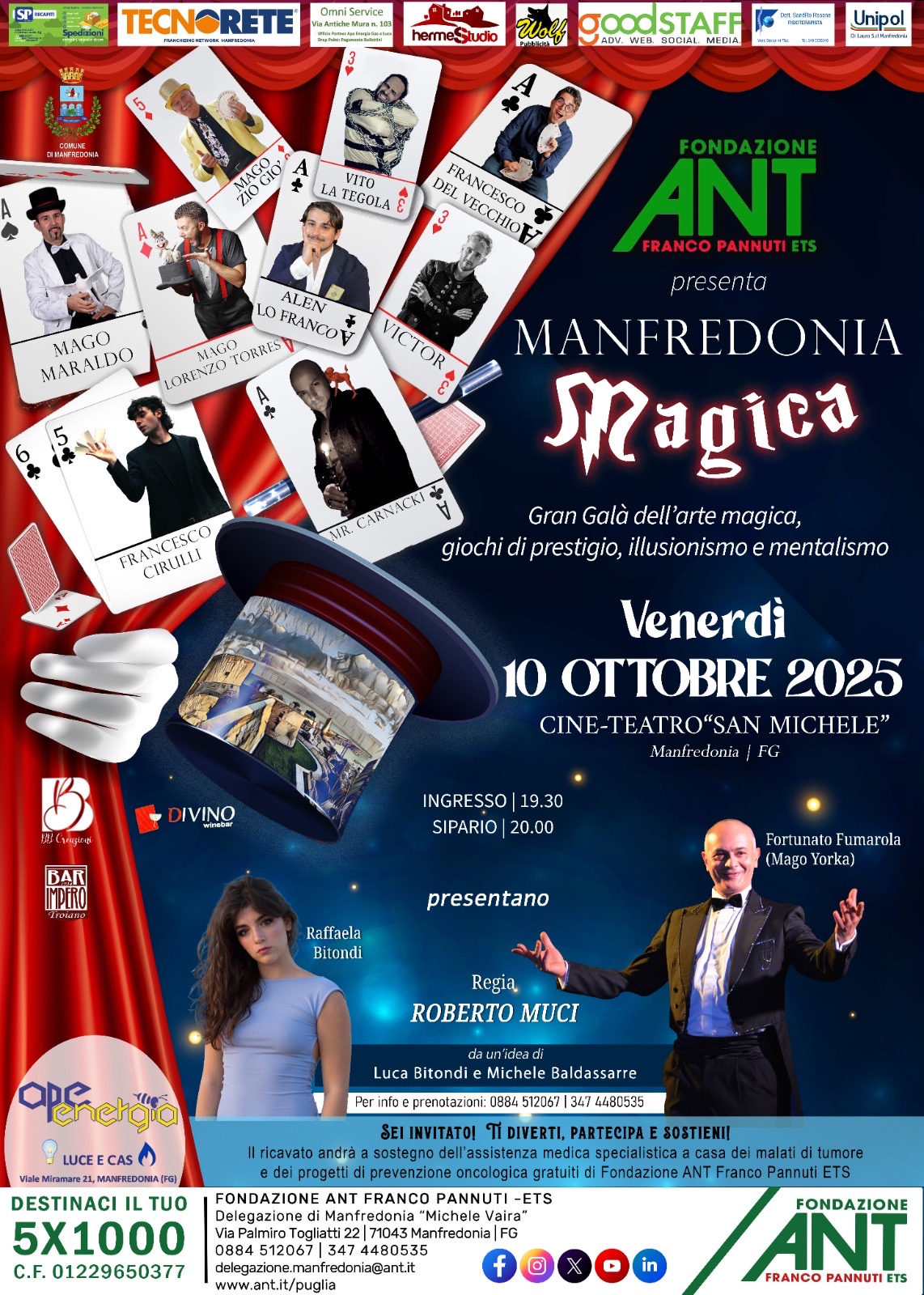 Il 10 ottobre ci sarà questo spettacolo di “magia”, tra gli eventi pensati per il ventennale della Delegazione Ant di Manfredonia e che sarà certamentesipo apprezzato da bambini, da ragazzi e da chi si sente “giovane dentro”. Invito a prenotare i biglietti quanto prima possibile per avere i posti delle prime file. Grazie