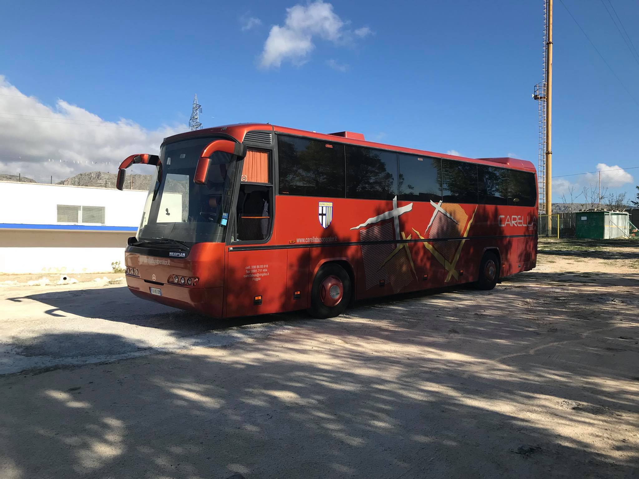 La squadra di calcio del Parma, attualmente militante in Serie B e ieri vittorioso a Foggia con un rotondo 3-0, si è allenato questa mattina nelle strutture della Polisportiva Salvemini di Manfredonia, unico campo sportivo della città del golfo in erba naturale.