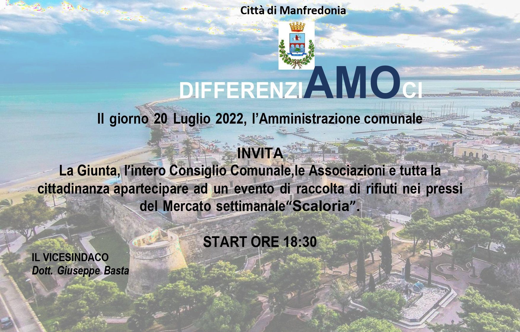 Parte mercoledì 20 luglio “DifferenziAMOci”, l’iniziativa di sensibilizzazione civica ed ambientale organizzata dall’Assessore alla Transizione Ecologica, Giuseppe Basta, che mensilmente vedrà l’interessamento di diverse zone sensibili della città.