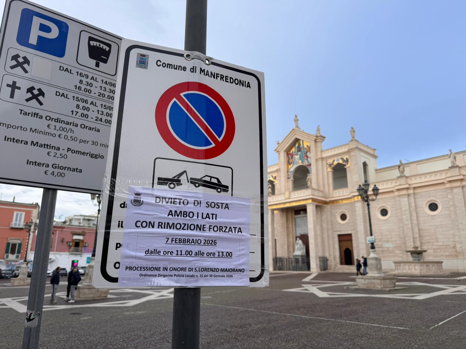 Divieto di sosta in ambo i lati con rimozione forzata il 7 febbraio dalle ore 11 alle ore 13 in occasione della Processione in onore di San Lorenzo Maiorano.