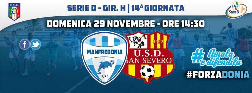 Si giocherà alle 14,30 l’incontro di calcio tra Manfredonia e San Severo in programma domenica 29 novembre-