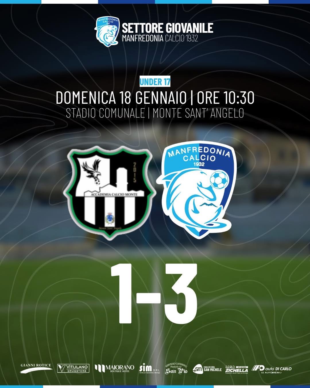 Inizia nel migliore dei modi la Seconda Fase Regionale della nostra Under 17, che espugna il Comunale di Monte Sant’Angelo superando l’Accademia Calcio Monte Sant’Angelo con il punteggio di 1-3.