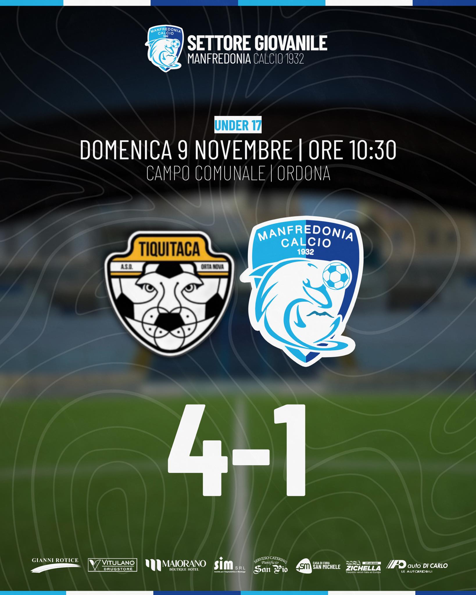 MANFREDONIA UNDER 17, SCONFITTA AD ORDONA CONTRO IL TIQUI TACA